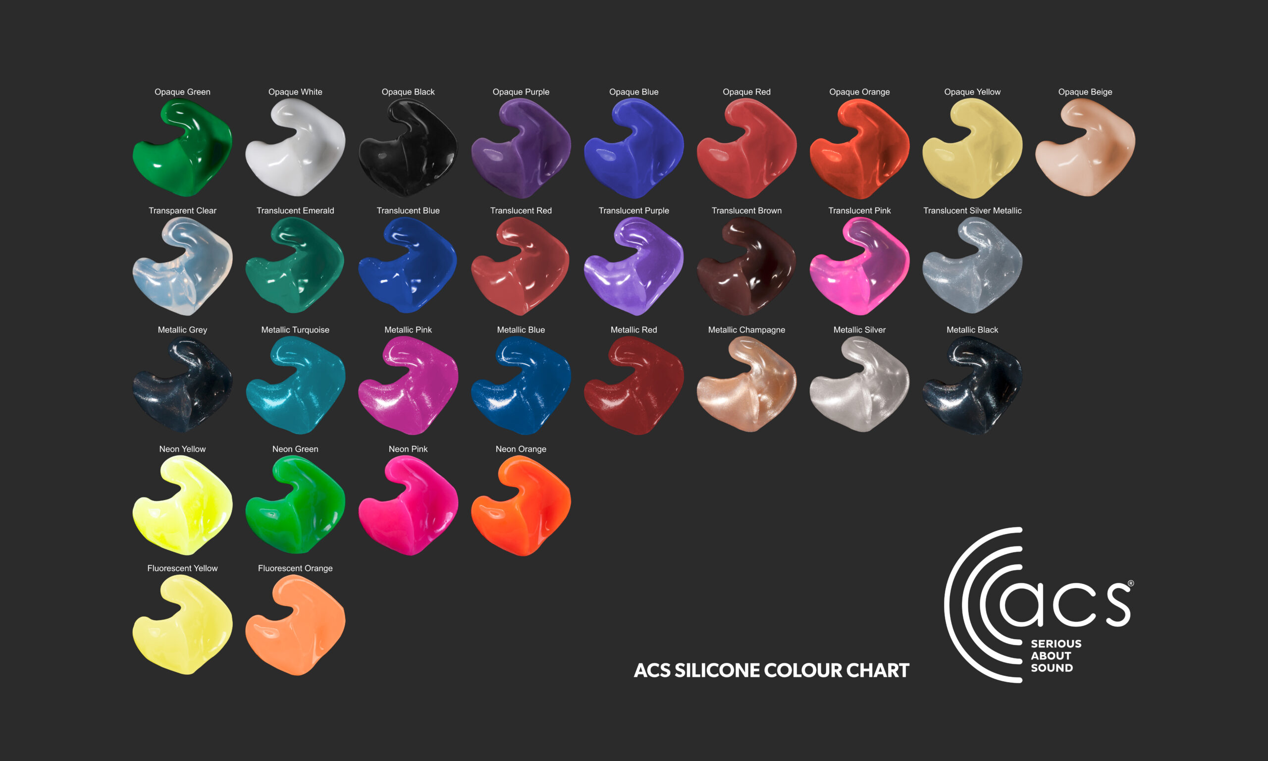 ACS har även ett komplett sortiment av in-ear monitorer för musiklyssning, medhörning på scen och i replokalen. Det finns även ett specialsortiment med proppar för kommunikation.